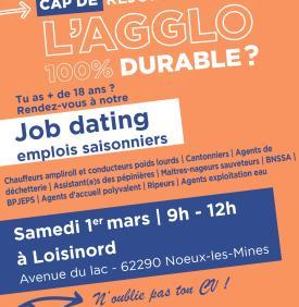 Emploi Tu cherches un job saisonnier ? Rendez-vous au job dating de l'Agglo ! La Communauté d’agglomération organise un job dating pour ses besoins saisonniers le samedi 1er mars
