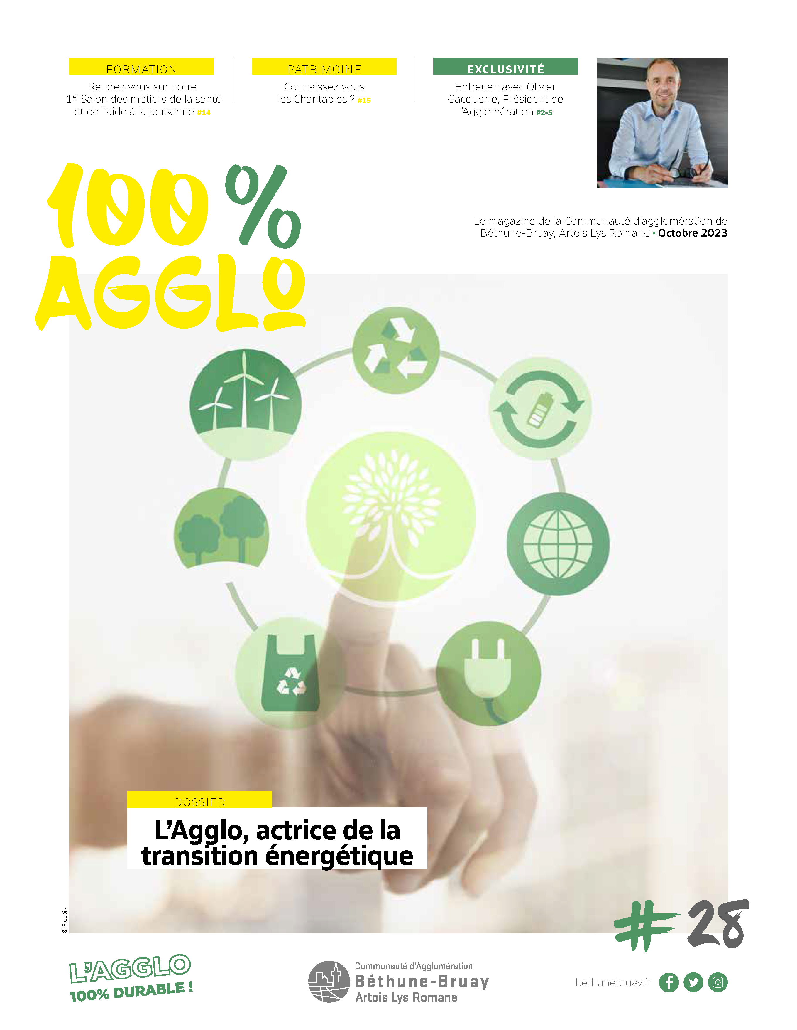 Retrouvez le numéro du mois d'octobre de votre magazine 100% Agglo. Dans ce numéro, le dossier est consacré à la transition énergétique de l'Agglomération.