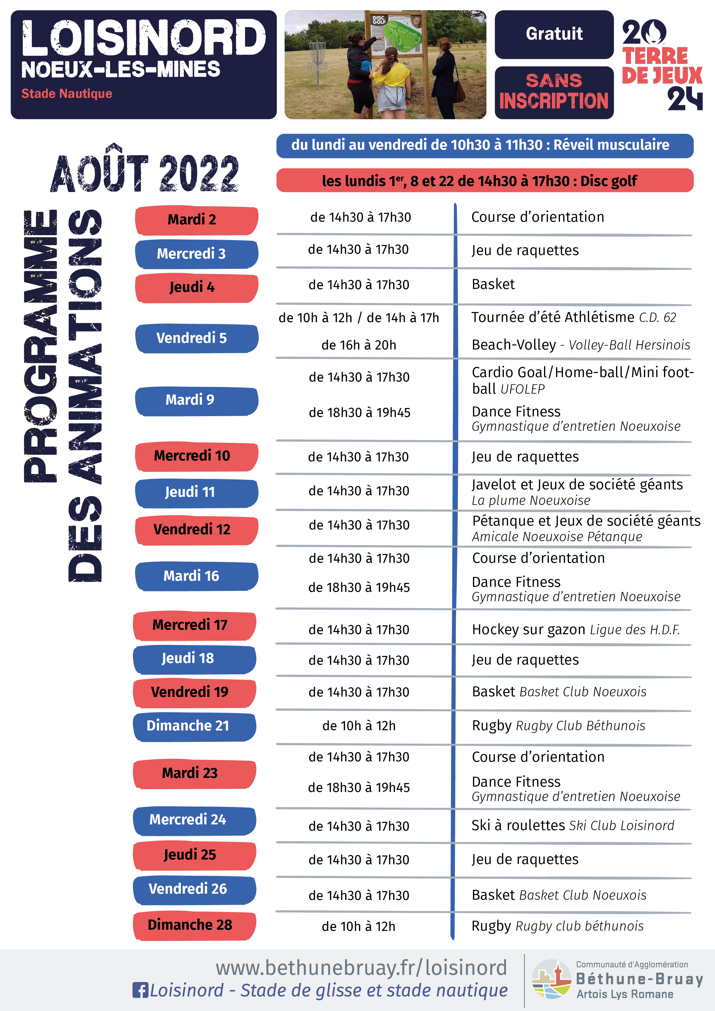 Chaque jour, profitez-en au stade nautique de Loisinord, de 10h à 20h :