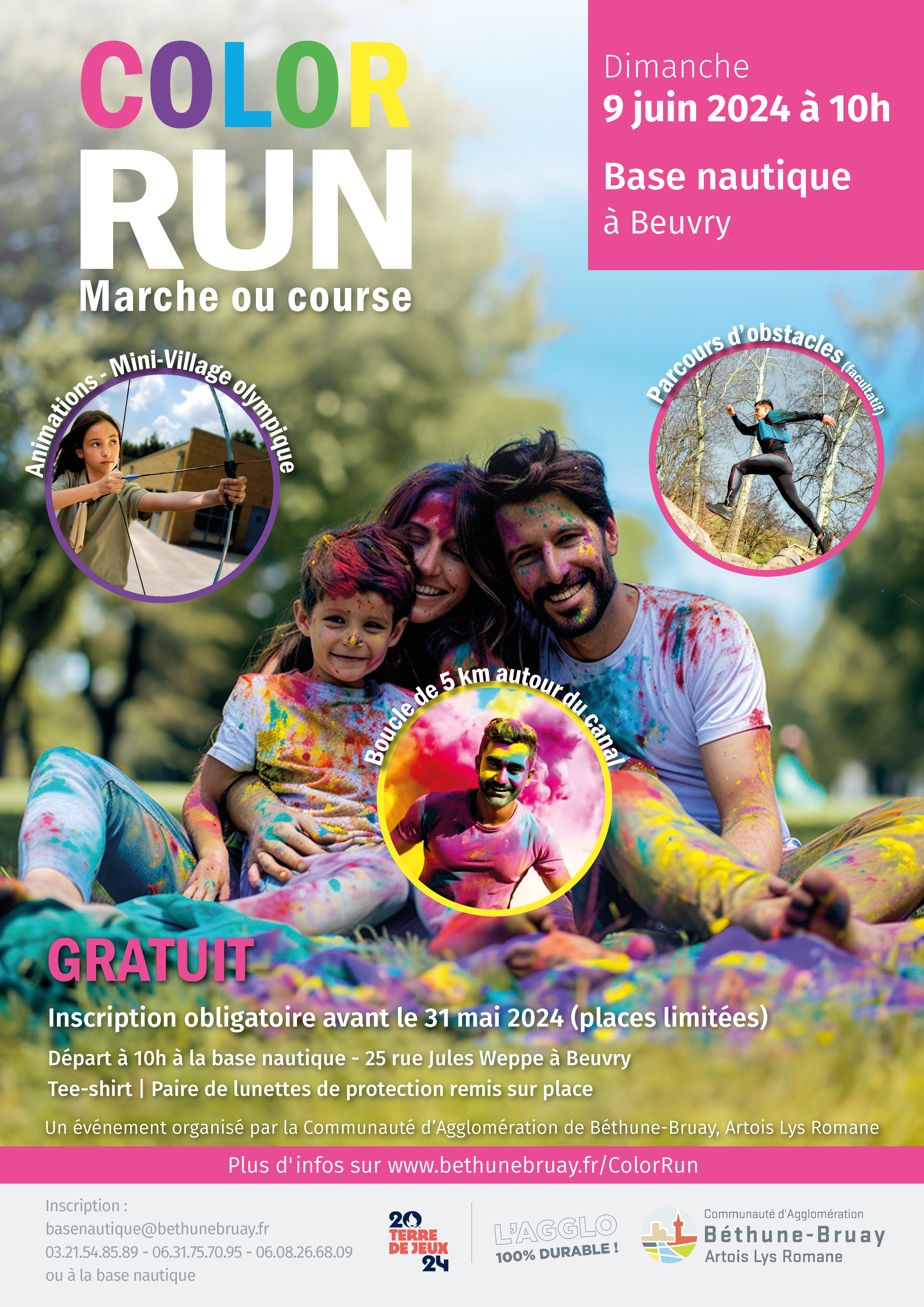 La communauté d'Agglomération de Béthune-Bruay, Artois Lys Romane lance sa première Color Run à la base nautique de Beuvry le 9 juin 2024 !